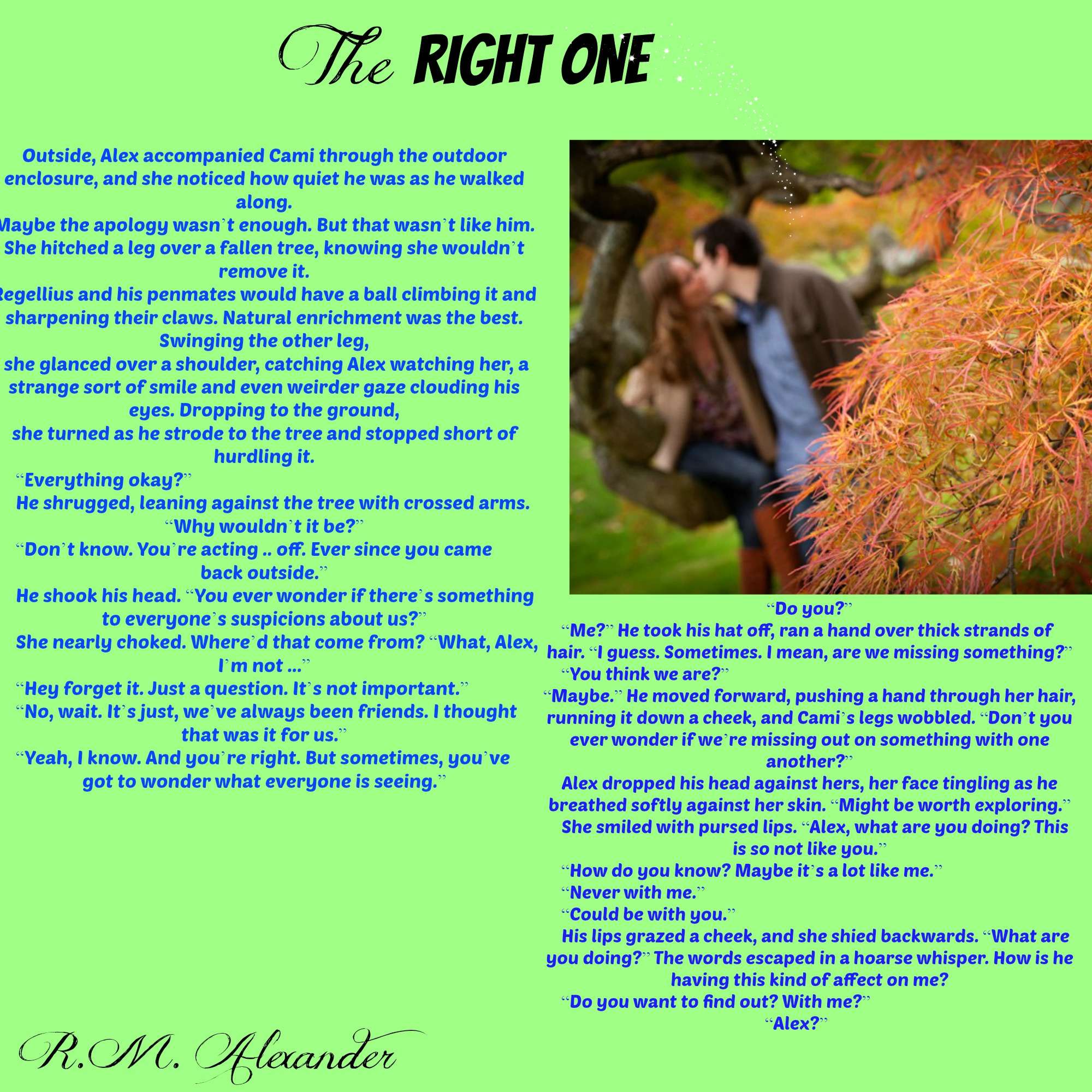 Alex sighed. Time to start dating again. Cami wasn’t the right one, despite how he felt about her. If she was, she’d be his. Playing the field would help him find the one, whoever she was. Then he could settle down, start a family.
