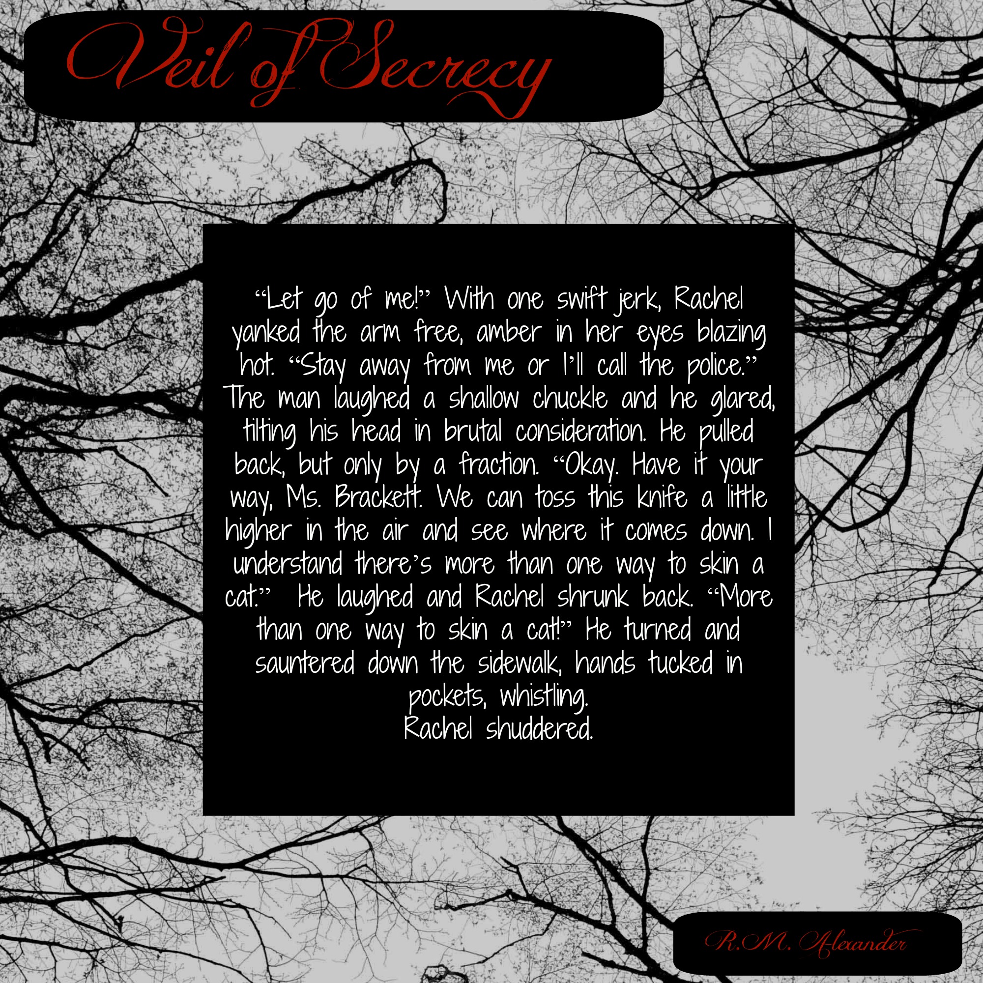 Rachel turned, scrutinizing the fading shadows for an outline, a hand or foot, anything to provide a hint of identity. “Yes, but then, how can I thank you for saving my life?”