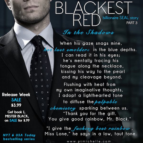 Just finished Blackest Red. Every chapter was perfect. The last chapter brought a few tears of happiness. Sebastian and Talia have been written so perfectly matching and needing each other. The perfect mystery that keeps the plot moving and the chemistry you feel for the characters move you and make you yearn for the passion that these two feel.